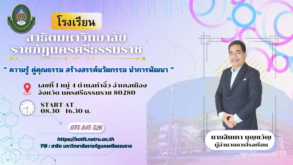 - เปิดรับสมัครนักเรียน มัธยมศึกษาปีที่ 1 โรงเรียนสาธิตมหาวิทยาลัยราชภัฏนครศรีธรรมราช