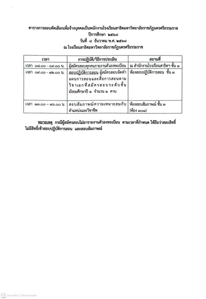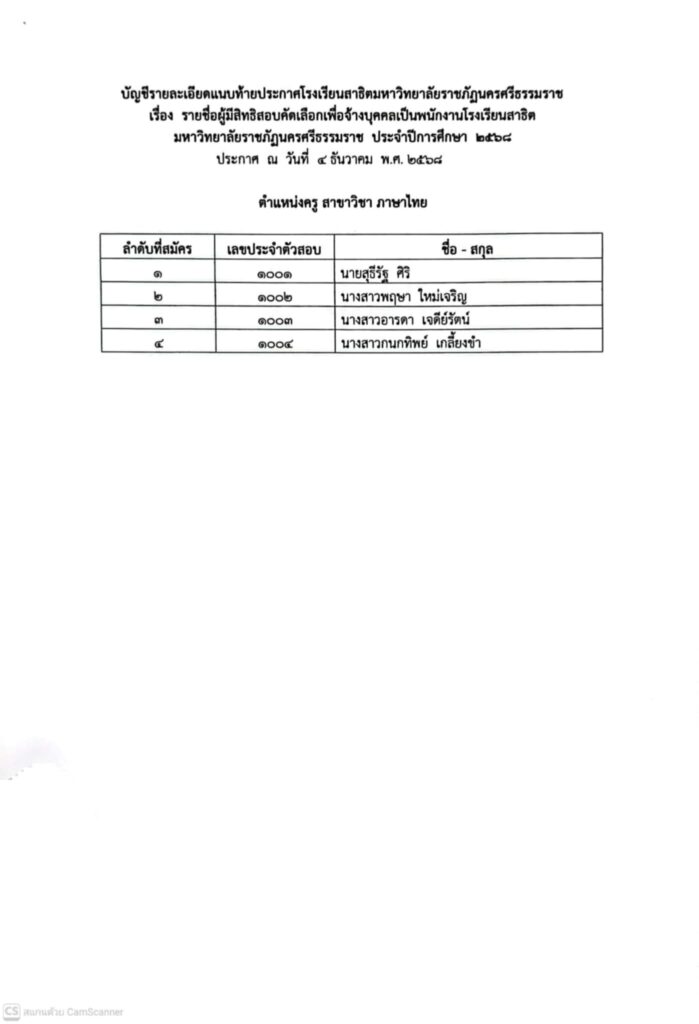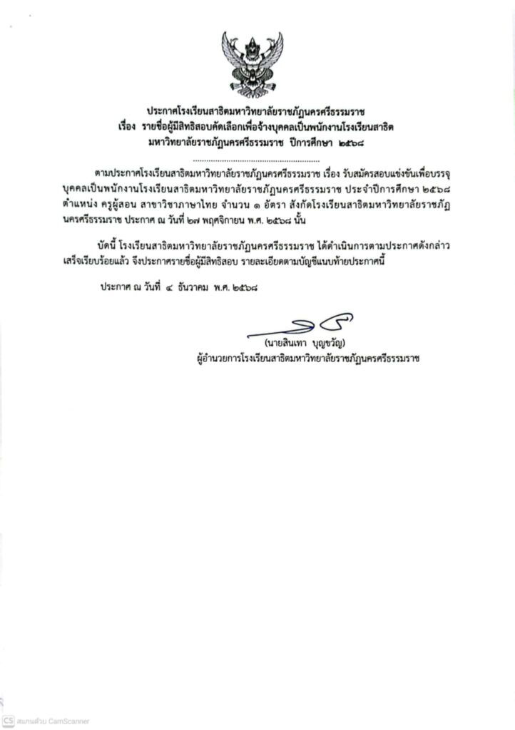👉เรื่อง รายชื่อผู้มีสิทธิสอบคัดเลือกเพื่อจ้างบุคคลเป็นพนักงานโรงเรียนสาธิตมหาวิทยาลัยราชภัฏนครศรีธรรมราช ปีการศึกษา 2568
