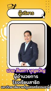 ผู้บริหารโรงเรียนสาธิตมหาวิทยาลัยราชภัฏนครศรีธรรมราช นายสินเทา บุญขวัญผู้อำนวยการประธานกรรมการบริหารโรงเรียน นางวัลภา วิเชียรสรางรองผู้อำนวยการโรงเรียนกรรมการ นายเอกชัย ทิพย์เสภารองผู้อำนวยการโรงเรียนกรรมการ